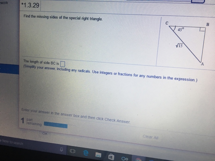 Solved: Use The Pythagorean Theorem, To Find The Length Of ... from d2vlcm61l7u1fs.cloudfront.net How you find the missing side depends on whether you are looking for the hypotenuse or a leg. Remember that you can find a missing side length of a right triangle using the pythagorean theorem. More importantly, how would a right triangle ask you about geometric means? This includes any missing side lengths and angle measures. To find the length or angle of a triangle, one can use formulas, mathematical rules, or the knowledge that the angles of all triangles add up to 180 degrees. Now find the following ratios using the sin cos tan buttons on your calculator. In fact, using trigonometry in order to get the answer to your question is to indirectly use pythagoras. Solving triangles w/ sine, cosine, & tangent.